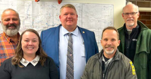 MN-Fish Executive Director Mark Holsten, board member Garry Leaf and National Marine Manufacturer's Association’s Jill Sims recently toured the Waterville fish hatchery with Senator Rich Draheim (center), whose district includes Waterville and much of southern Minnesota.
